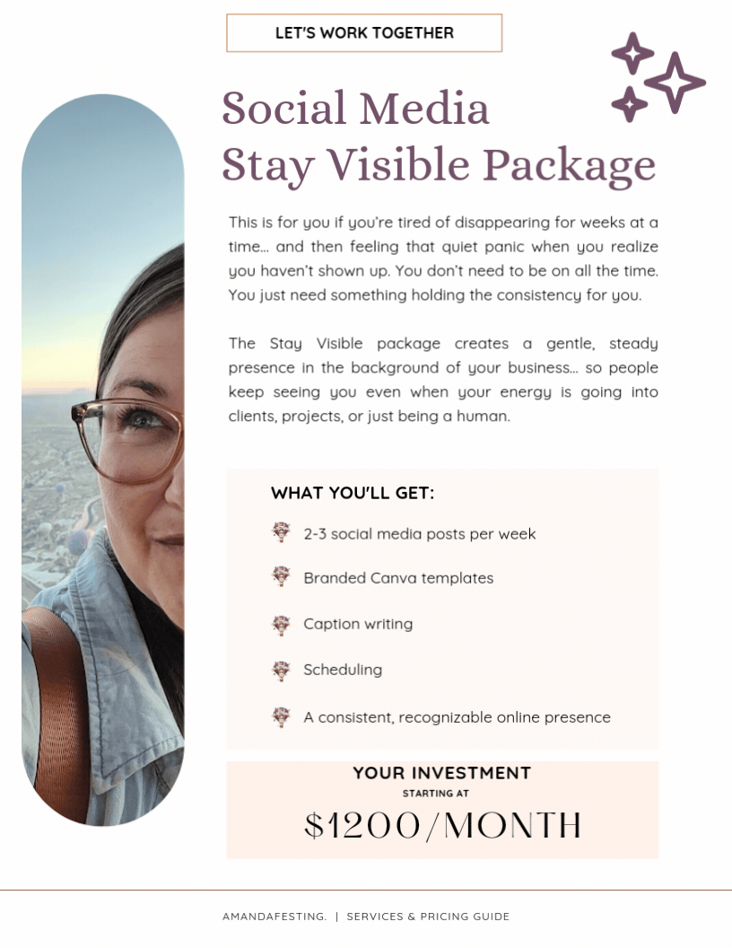 Most services are month-to-month unless otherwise stated. This work is about creating steadiness, not trapping you in something that no longer feels aligned.